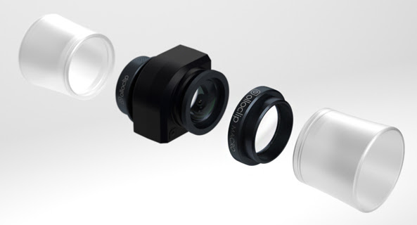 The lens itself is designed from an anodized aluminum material that houses the coated, multi-element optics, and attaches to a device through a soft plastic material.